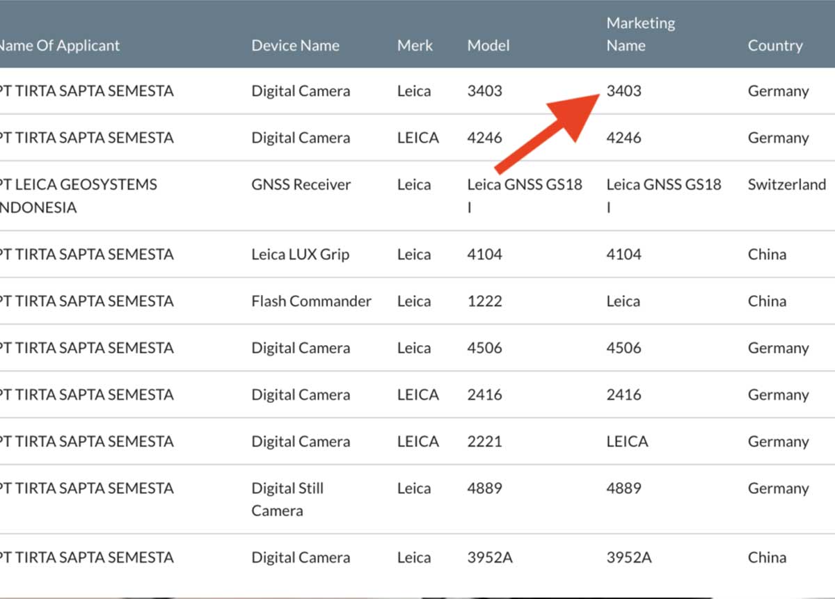 - 昨日、ライカはインドネシアの認証機関に新しいカメラモデル3403を登録した。