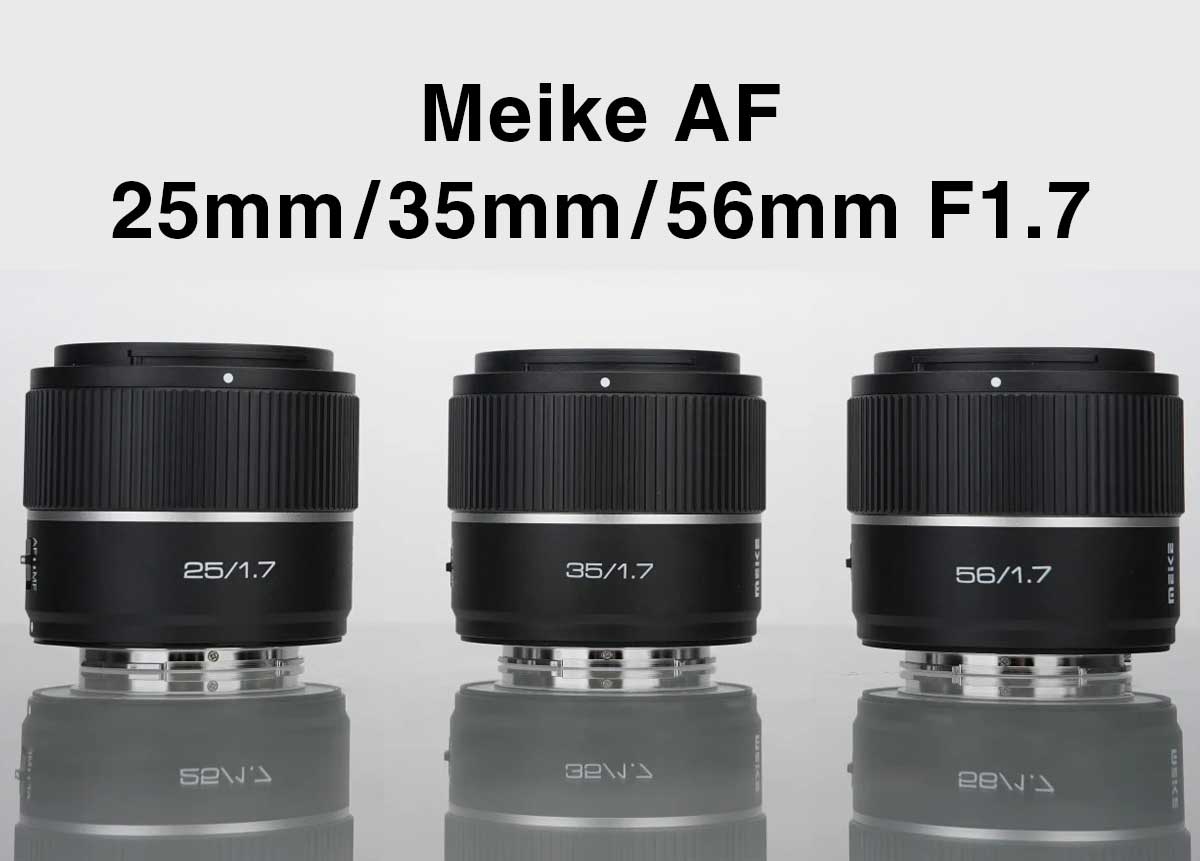 Meikeの新ライン「Meike AF Air」に、APS-C向けの小型AF単焦点がまとまって見えてきた。「25mm F1.7」「35mm F1.7」「56mm F1.7」の3本で、対応はソニーE/富士フイルムX、さらにニコンZも加わる可能性がある。カラーはブラック/ホワイトの2色展開が噂され、手軽に揃えられる“軽量AF三兄弟”になりそうだ。加えて、新しい「AF 85mm F1.4 SE」も控えるという。