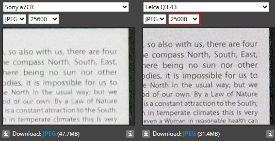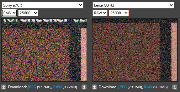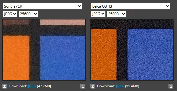 - 個人的にはスタジオ機材としてソニーを使用しており、大のソニーファンであるが、事実は事実であり、ライカはソニー「α7CR」のセンサーよりも明らかにノイズの少ない画像を生成している。